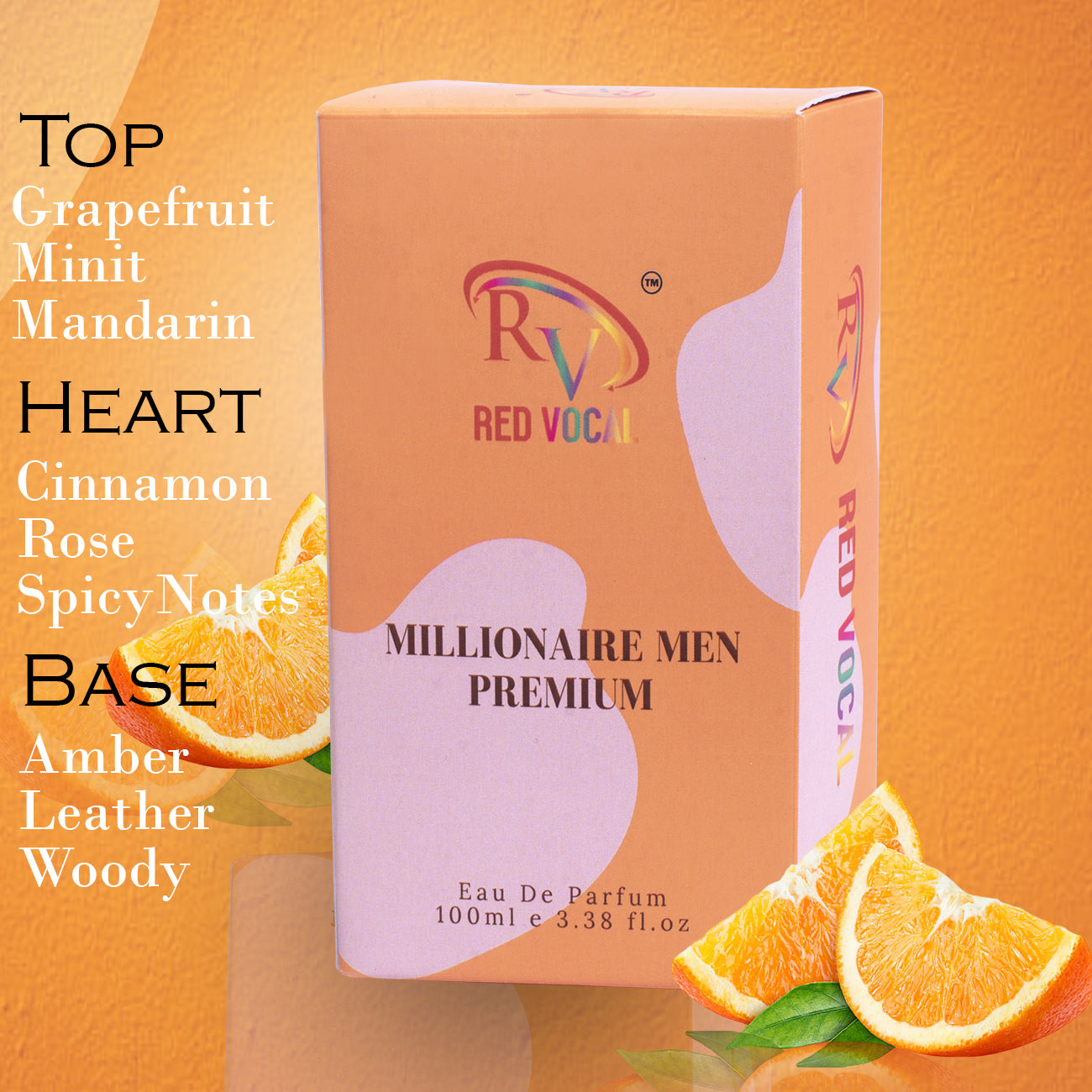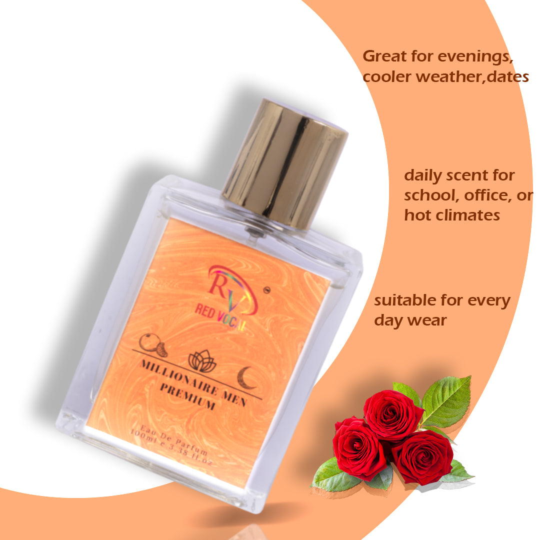 It opens with sparkling grapefruit and blood mandarin, unfolds into spicy cinnamon and rose notes at the heart, and settles into a rich base of amber, patchouli, and leather. Millionaire Men is your go-to fragrance for sealing deals and making memories.