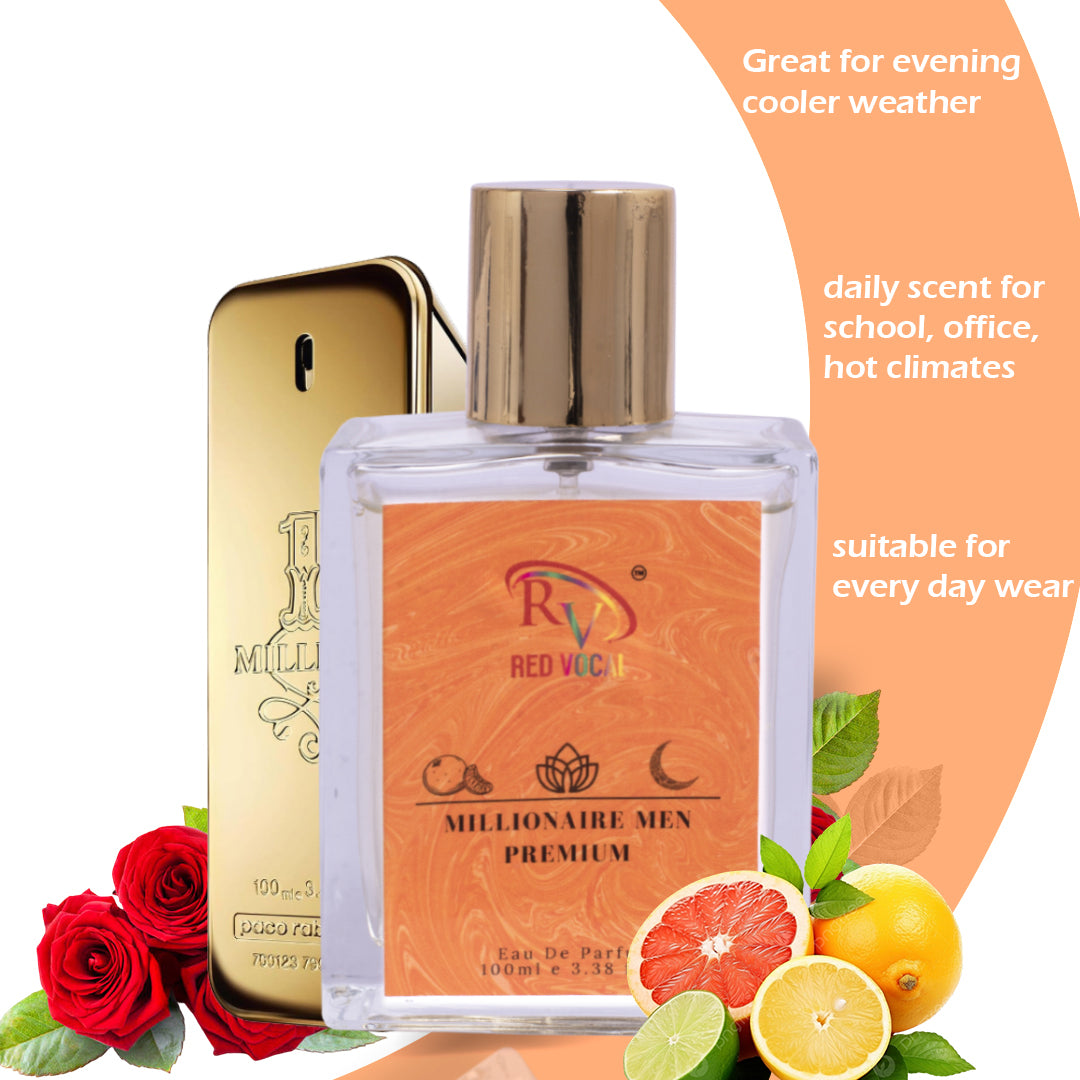 Step into the spotlight with Red Vocal Millionaire Men Eau De Parfum, a powerful and charismatic fragrance crafted for the modern man. Inspired by the iconic 1 Million, this premium scent delivers luxury, energy, and confidence in every spray.