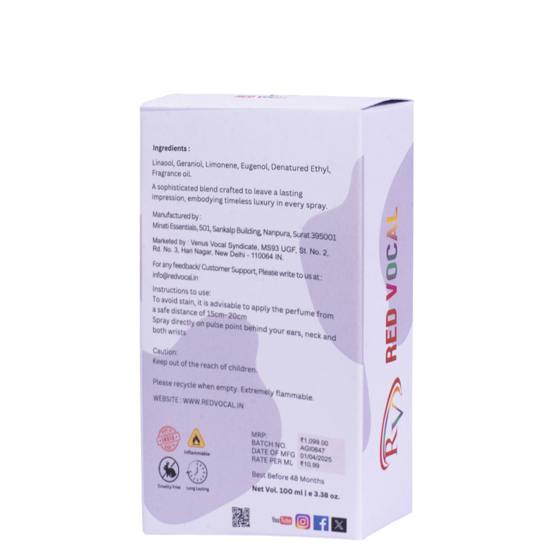 Perfect for those who appreciate oriental finesse, Red Vocal White Oud delivers a long-lasting aura of class and grace – making it ideal for everyday wear, festive gatherings, or intimate evenings.