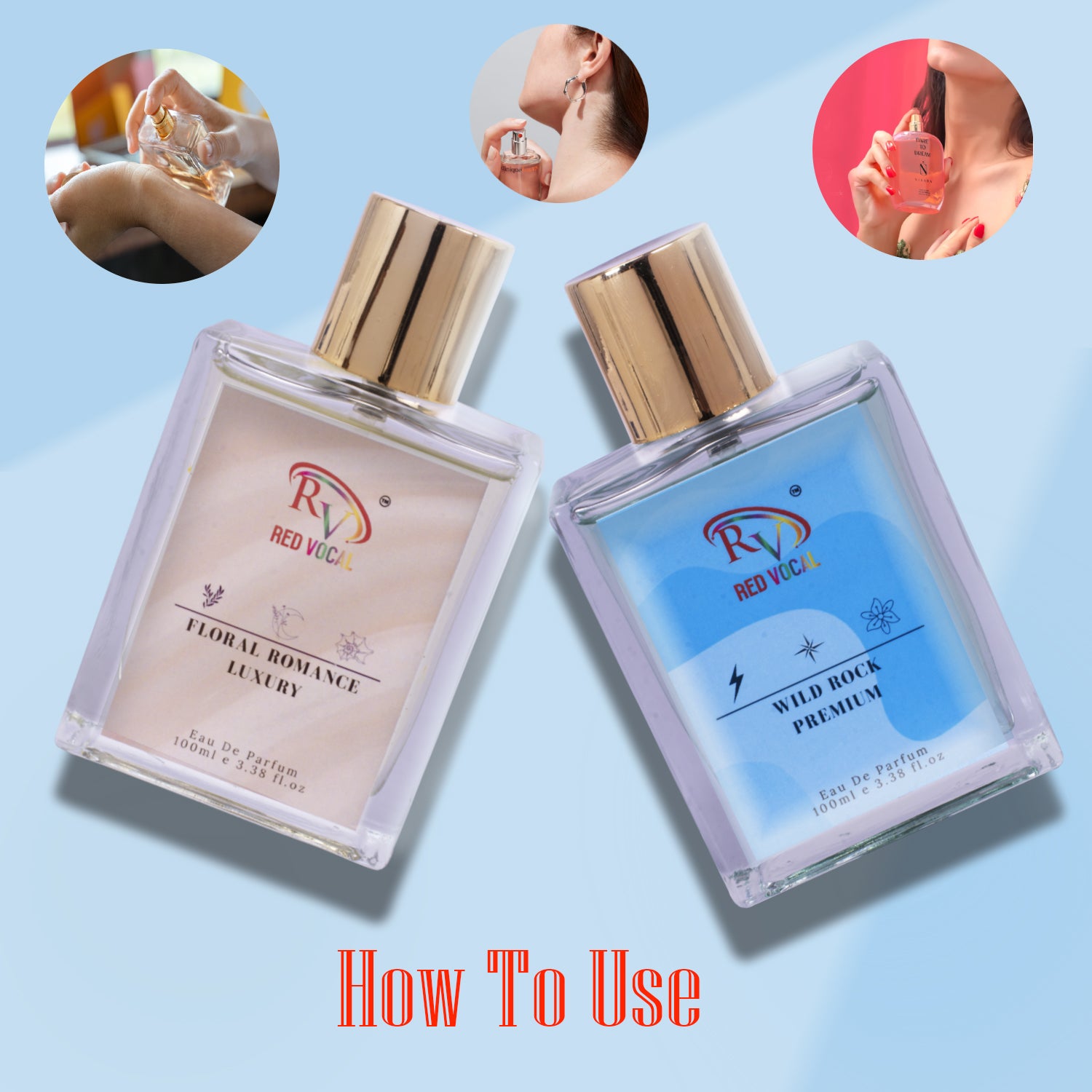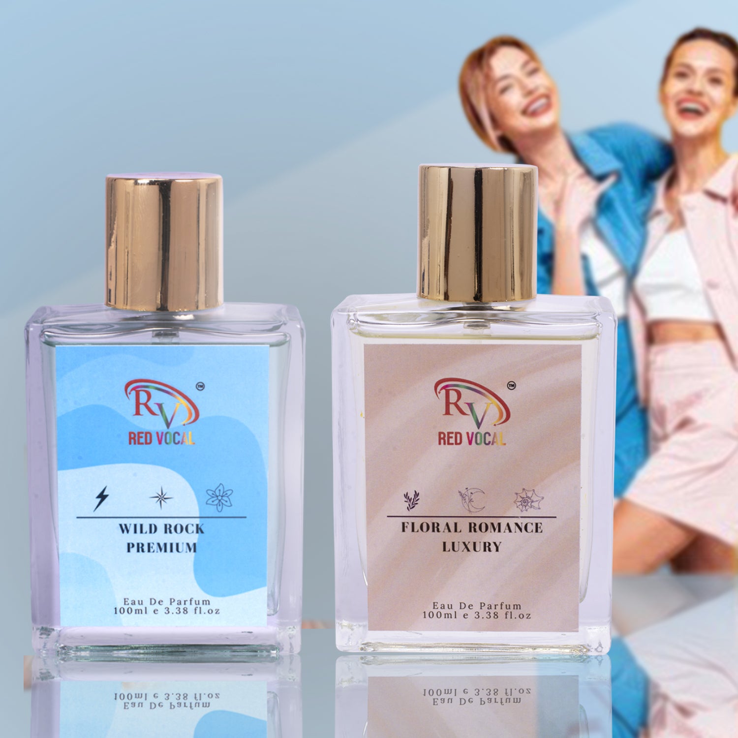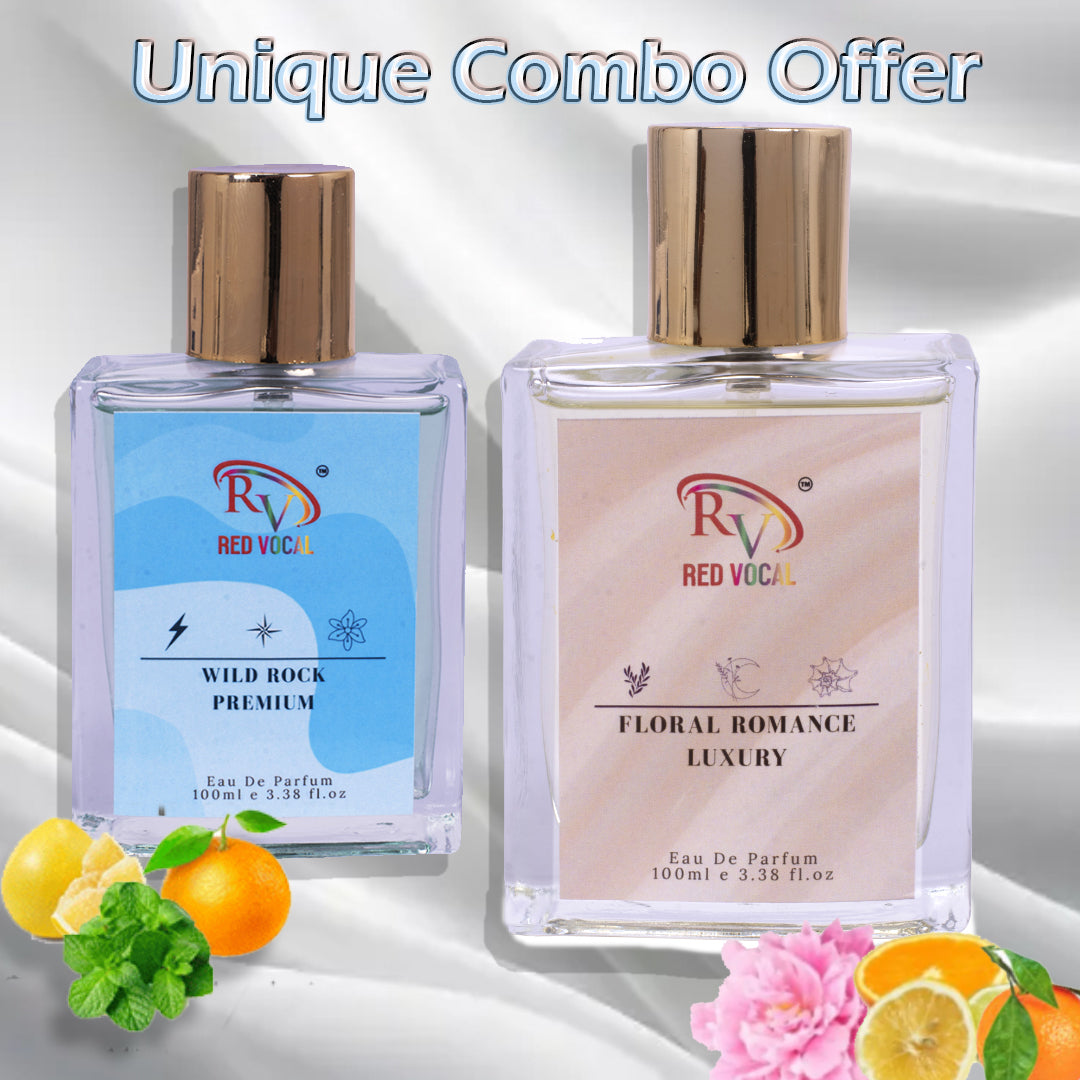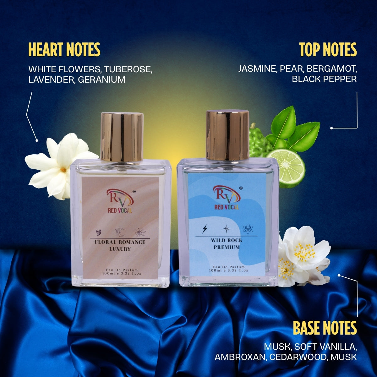 Red Vocal Floral Romance Luxury (Women) with Wild Rock Premium (Men) Eau de Parfum Combo – 2 x 100ml