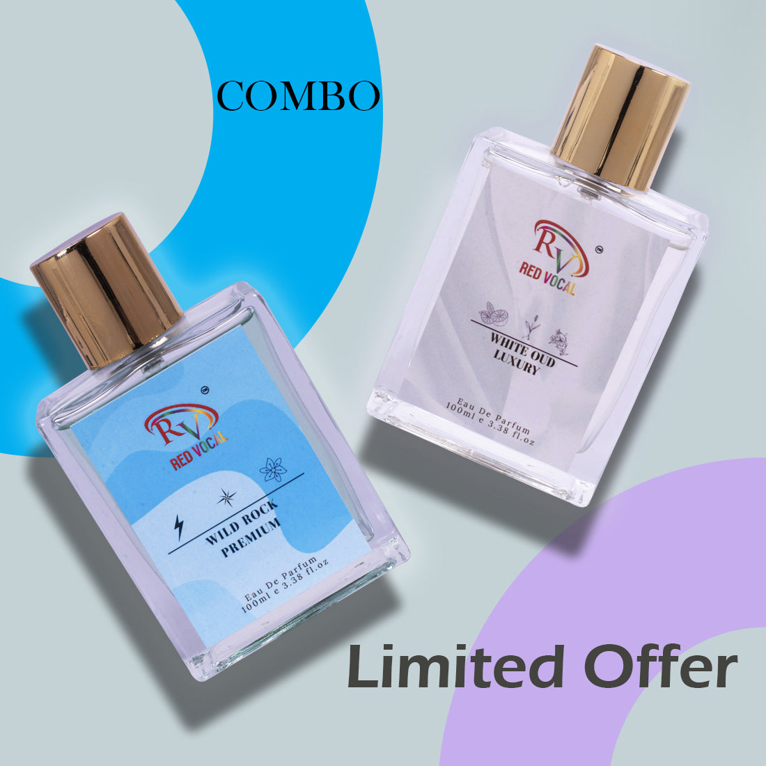 Step into a world of bold elegance with the Red Vocal Wild Rock Premium (Men) + White Oud (Unisex) Eau de Parfum Combo. This perfect pair combines intense masculinity with the timeless, luxurious aroma of oud, making it ideal for every occasion.
