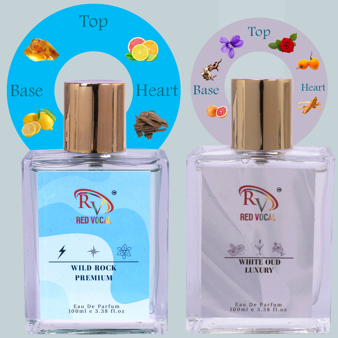 Red Vocal Wild Rock Premium (Men) With White Oud (Unisex) Eau de Parfum Spray Combo – 2 x 100ml | Long Lasting Fragrance